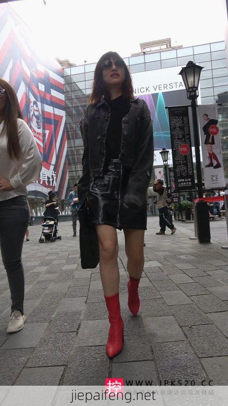 [短裙] 4K-黑色皮短裙街拍高跟美女DJ318[1.12G]