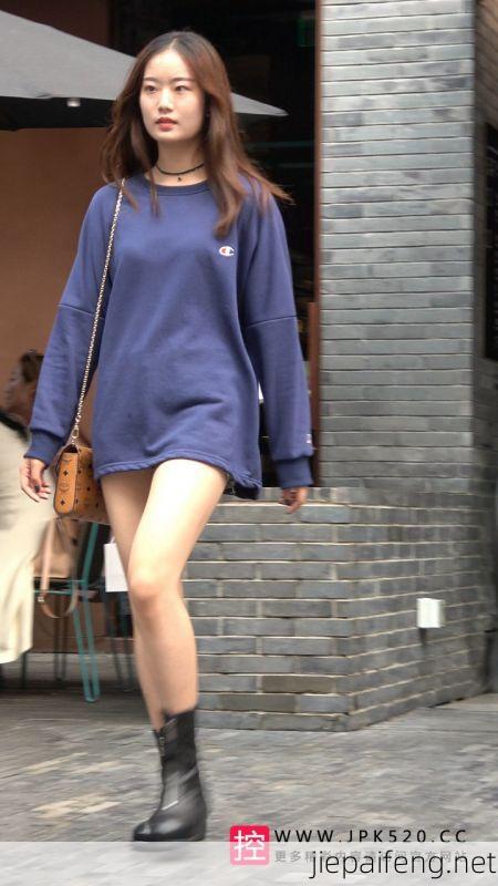 [美腿] 4K-深蓝色T恤皮靴长腿街拍美女在自拍DJ312[1.36G]