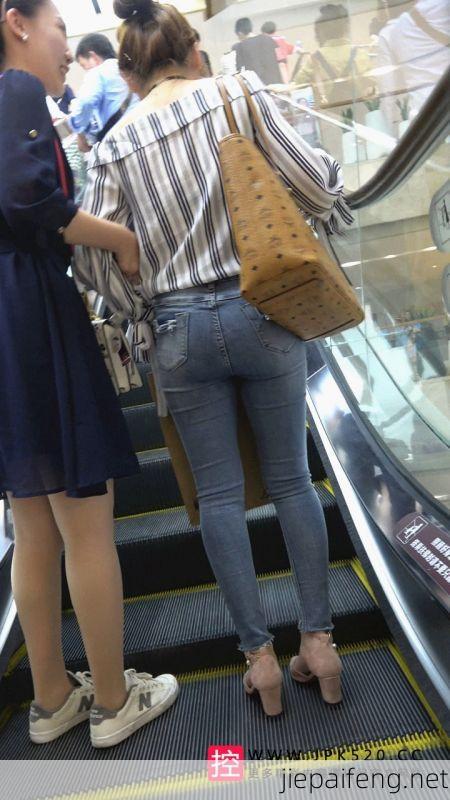 [牛仔裤] 4K-街拍蓝色紧身牛仔裤细腿员润翘臀美眉M139[1.1G]