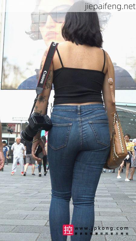 [牛仔裤] 4K-街拍吊带上衣蓝色紧绷牛仔裤饱满丰臀美女T113[1.31G]
