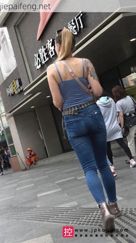 [牛仔裤] 4K-蓝色紧身牛仔金发高挑极品丰臀洋妞M098[457M]