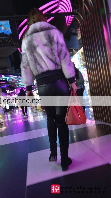 [皮裤] 4K-黑色紧身皮裤高靴长腿圆润翘臀美眉M077[1.23G]