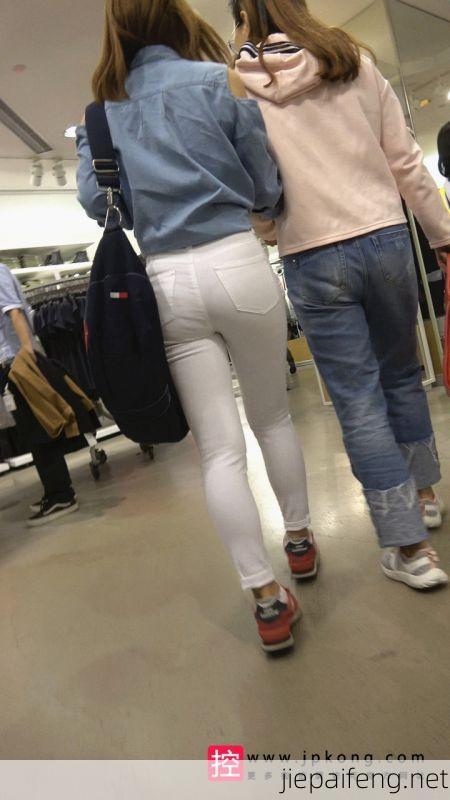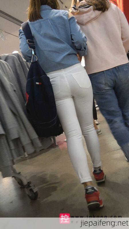 [牛仔裤] 4K- 街拍白色紧绷牛仔裤饱满翘臀美女M051[845M]