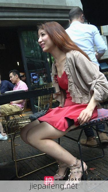 [短裙] 4K-气质红短裙高跟街拍美女吃下午茶DJ103[1.18G]
