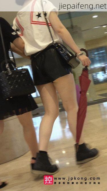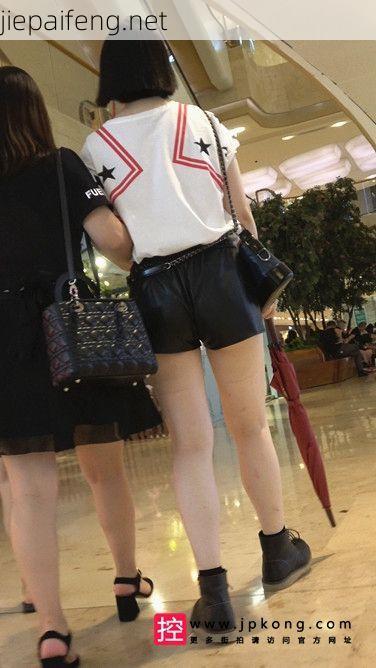 [热裤短裤] 4K-商场黑色休闲皮短裤白嫩腿女子M014[815M]