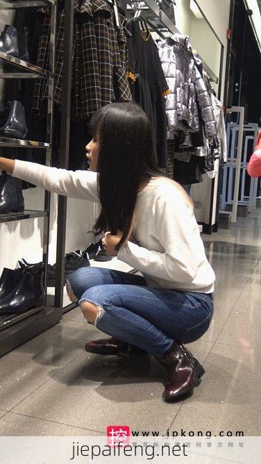 [牛仔裤] 4K-商场蓝色紧身牛仔裤高筒长靴圆臀美女第2季T062[1.58G]