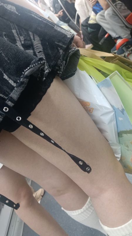 资源简介:潮流露美肩女子大生的带子裙搭配白色绑腿袜显露美腿