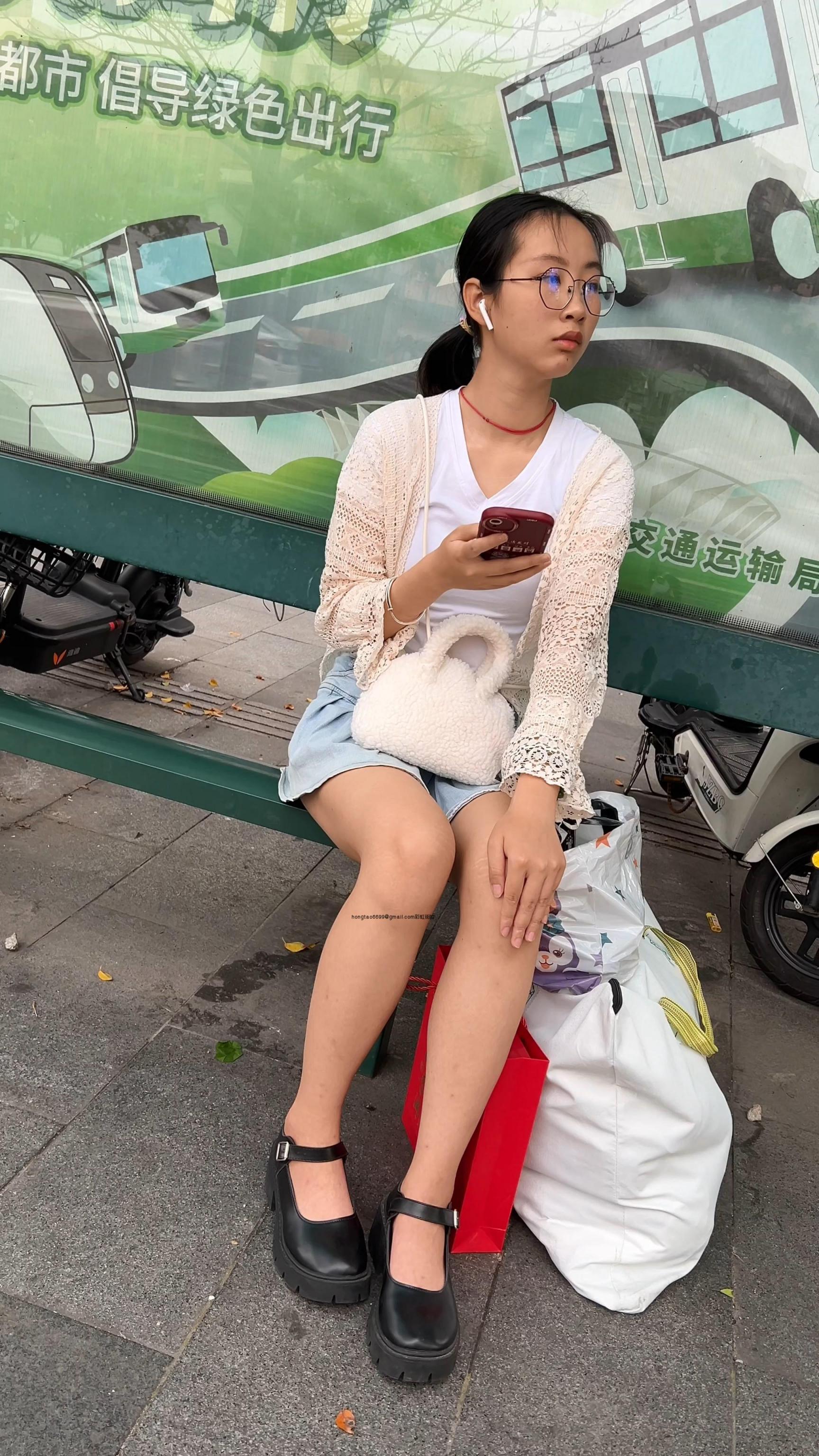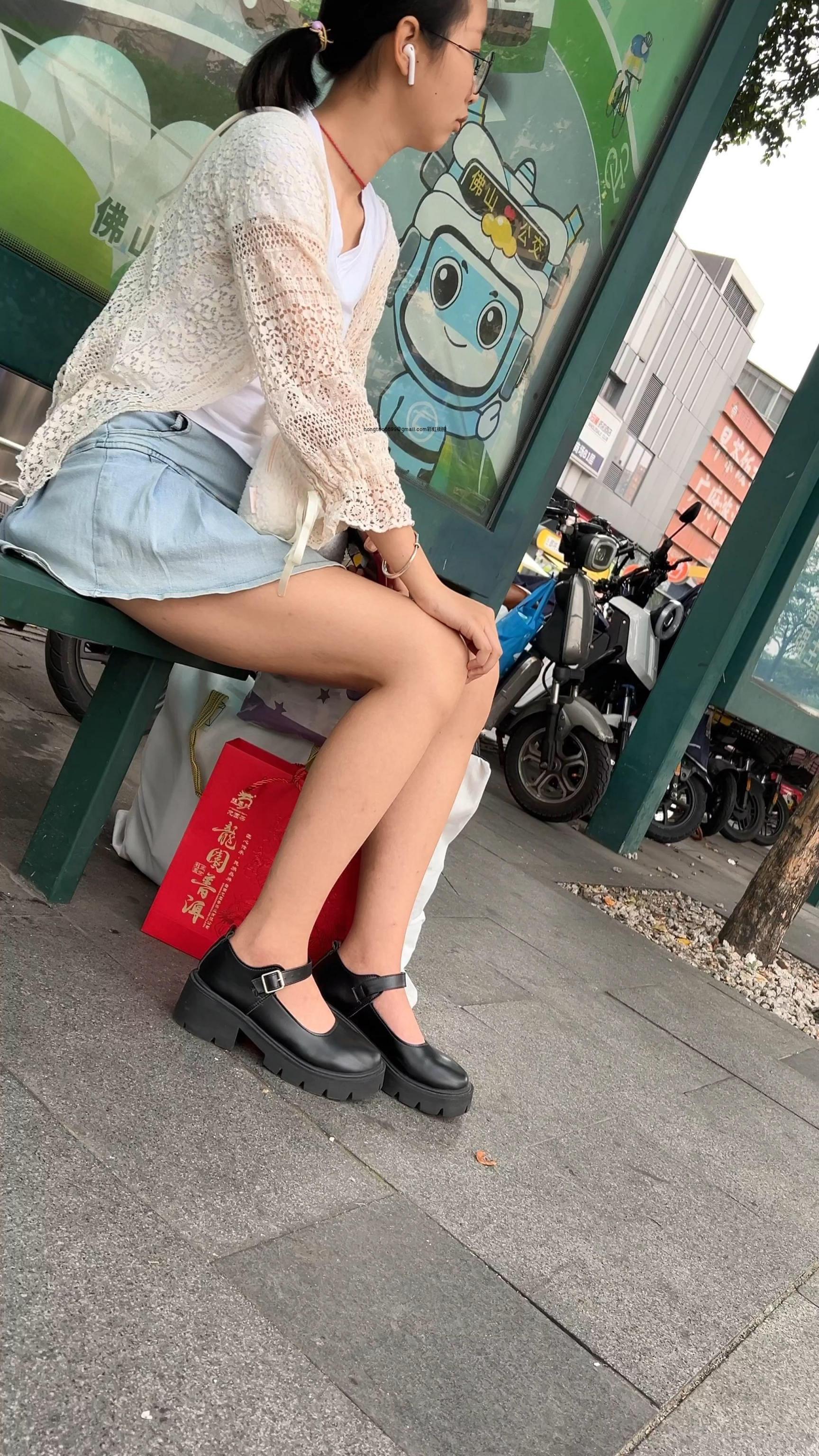 【独家原创】街拍眼镜小美女细嫩美腿黑色皮鞋的魅力2分24秒