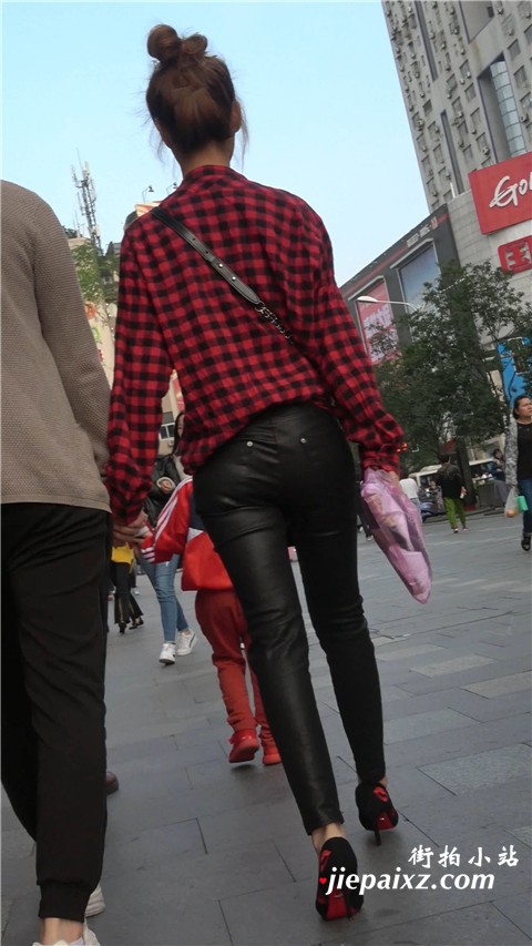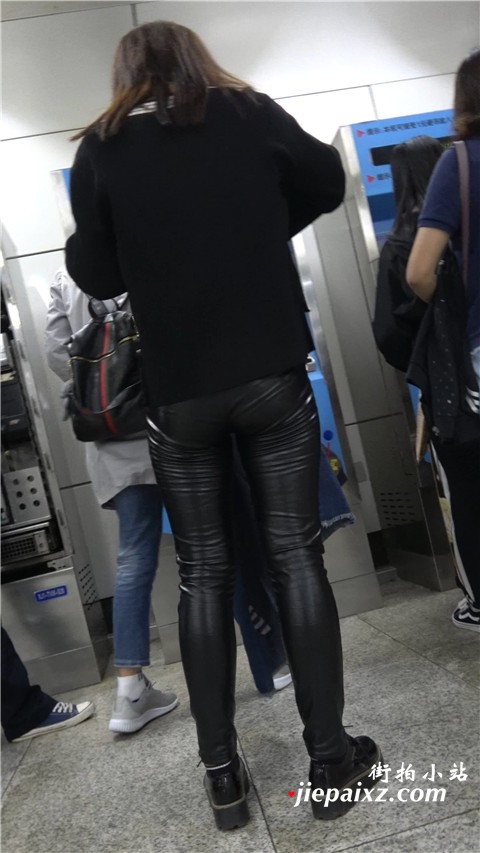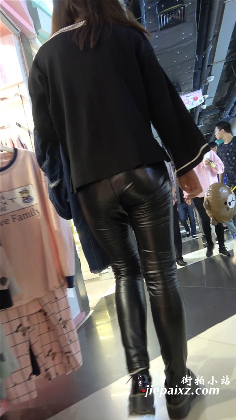 黑色皮裤街拍美女 [1.00 GB/MP4]