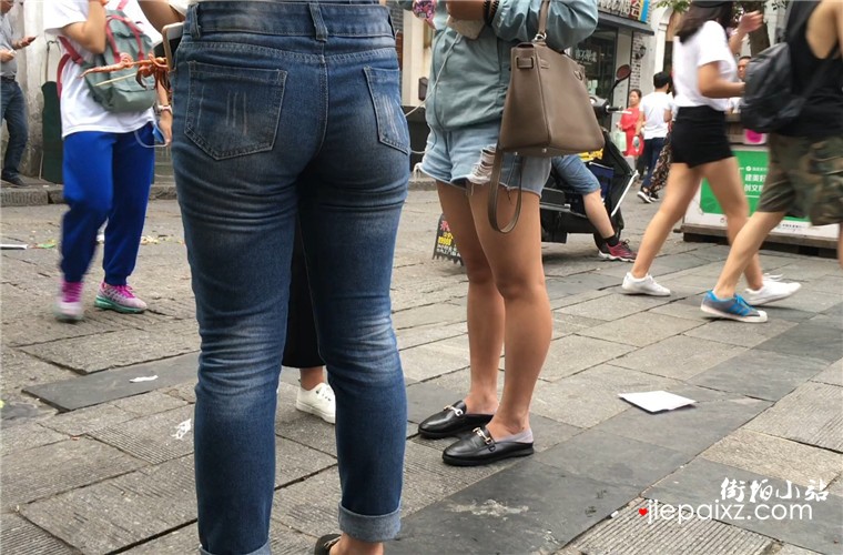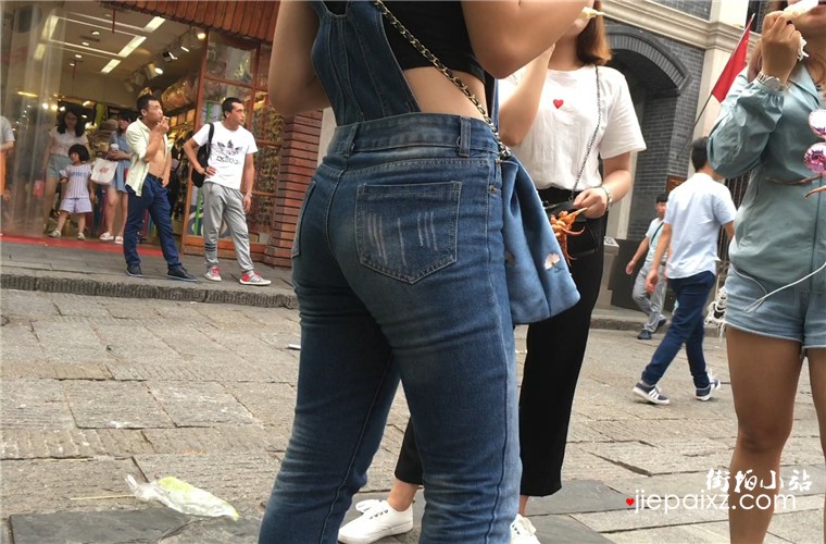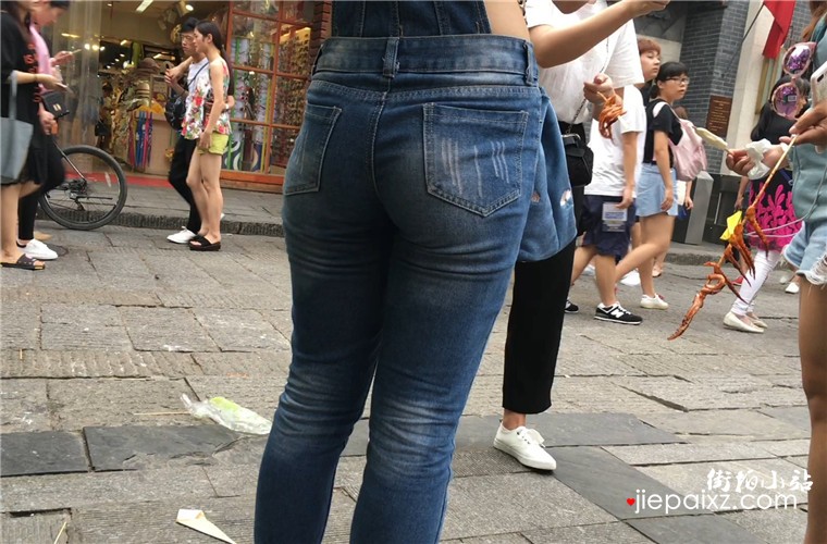 街拍吊带紧身蓝色牛仔裤美女,翘起美臀还以为放有跳蛋被人远程超控了呢