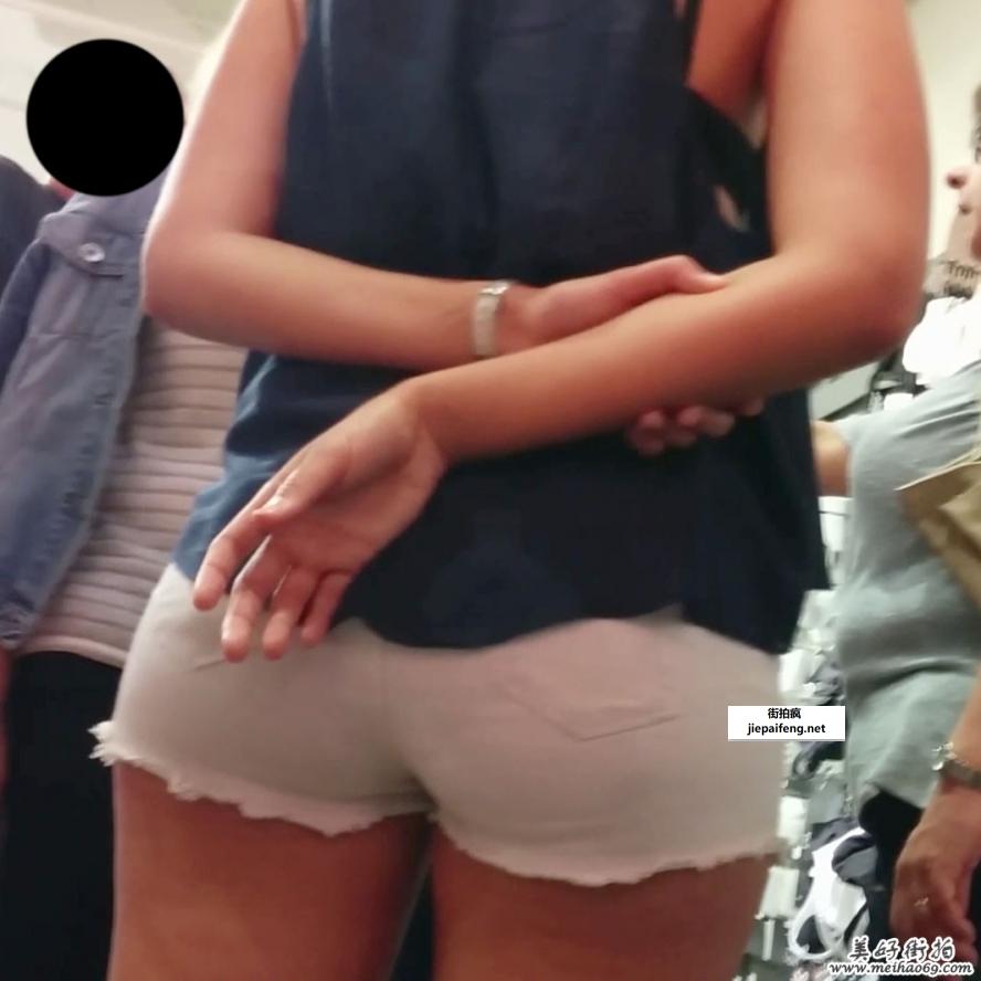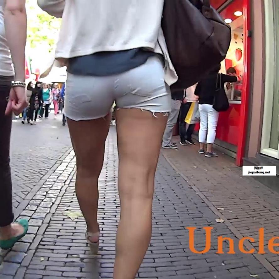 街拍洋妞紧身牛仔短裤饱满大屁股[MP4/176M]