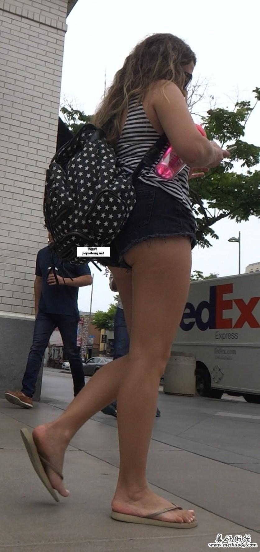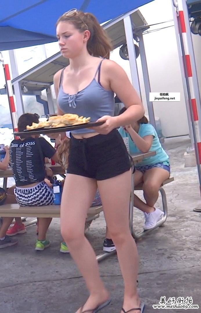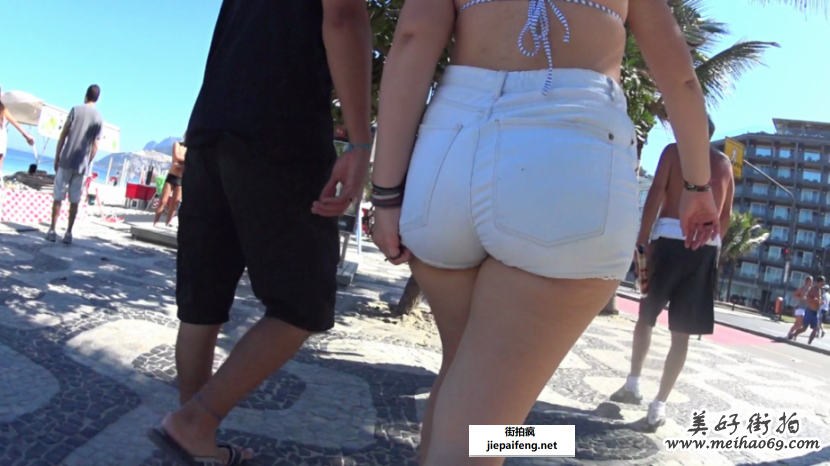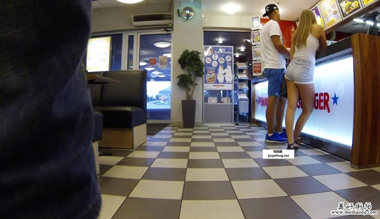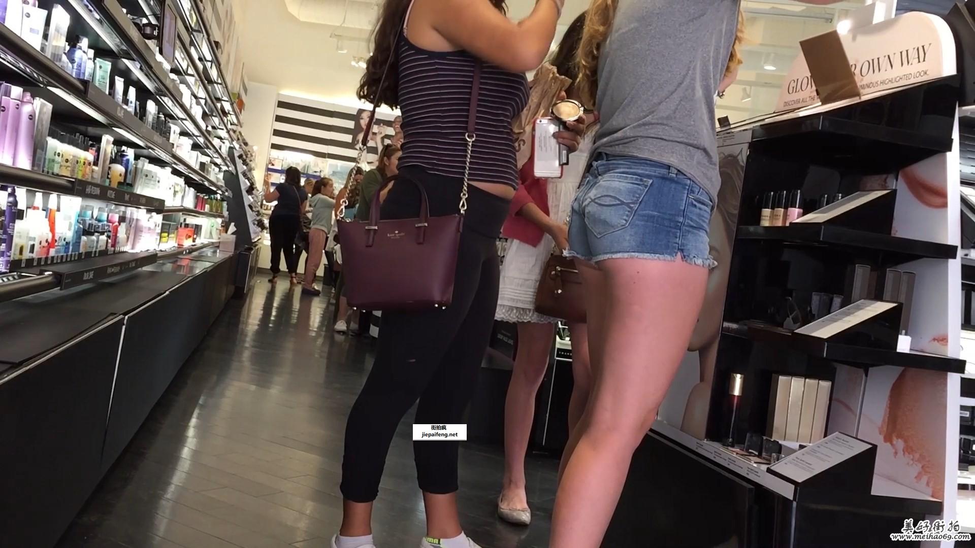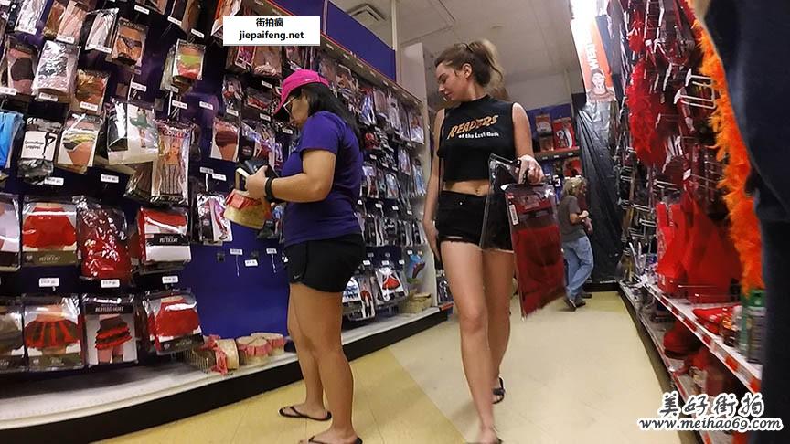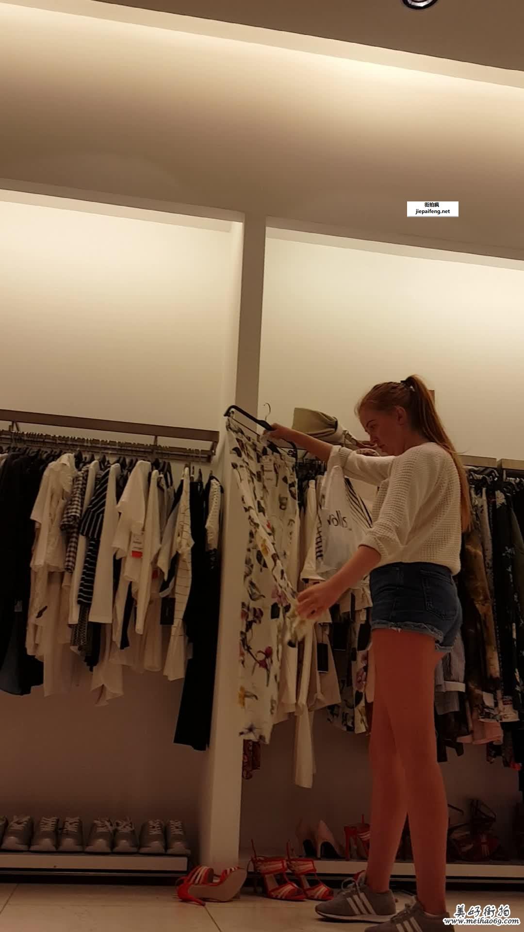 超市购物的白色紧绷牛仔热裤高挑身材金发洋妞[MP4/416M]