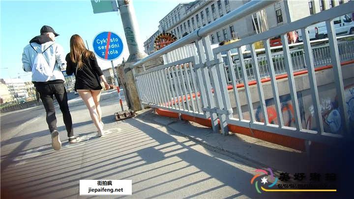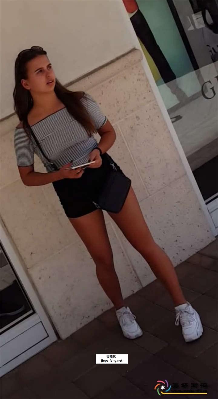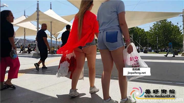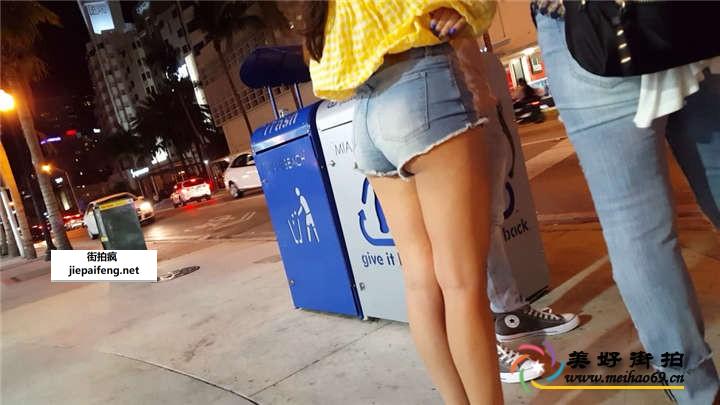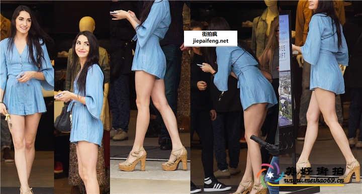 街拍蓝色牛仔热裤金发美眉极品白腿[MP4/316M]
