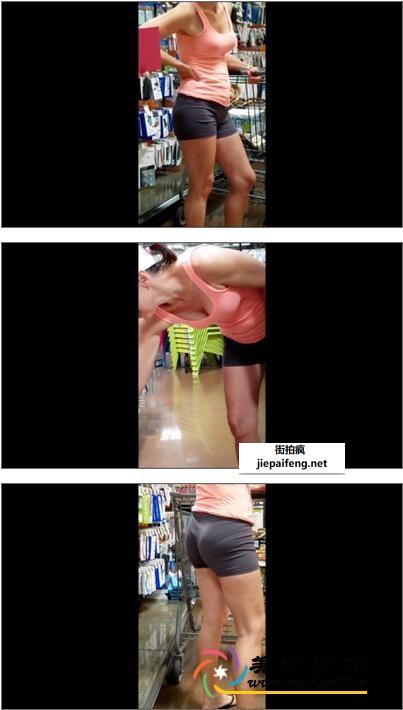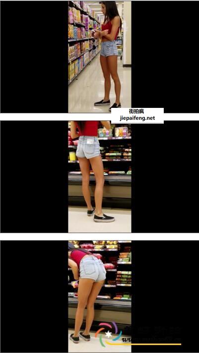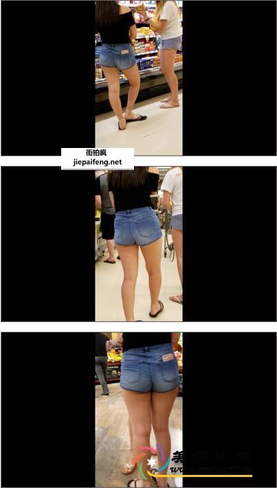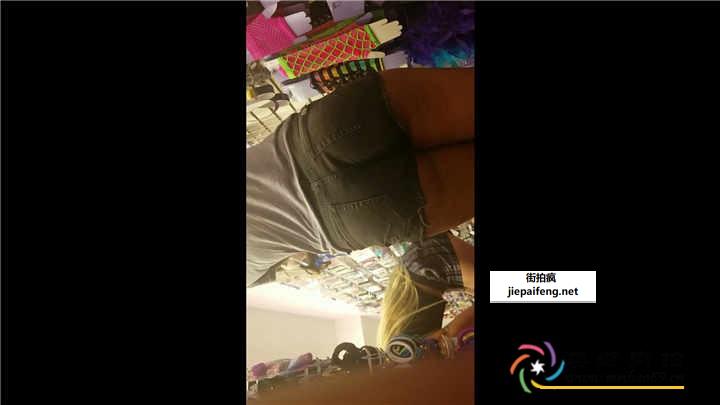 商店近拍绿色牛仔热裤饱满圆润翘臀洋妞[MP4/142M]