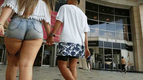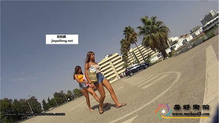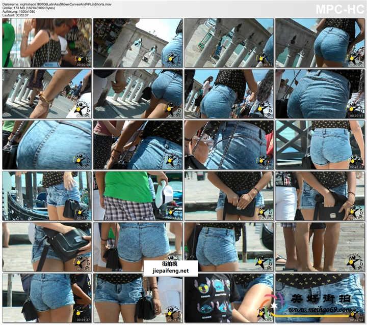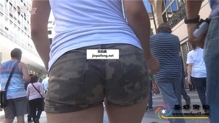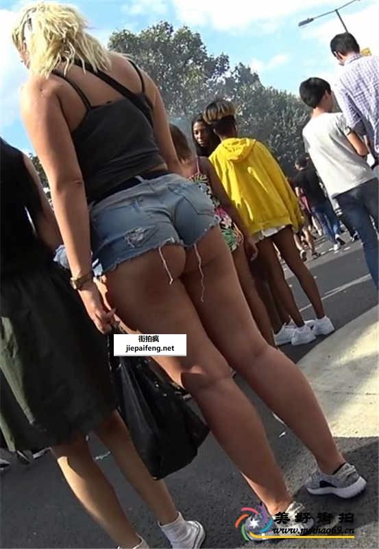 街拍黑色热裤性感长腿圆臀洋妞[MP4/147M]