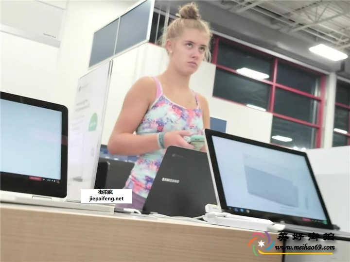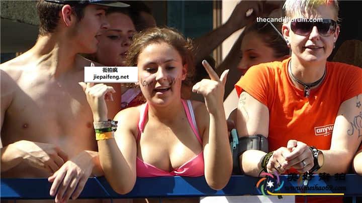 街拍低胸上衣金发洋妞性感大胸[MP4/143M]