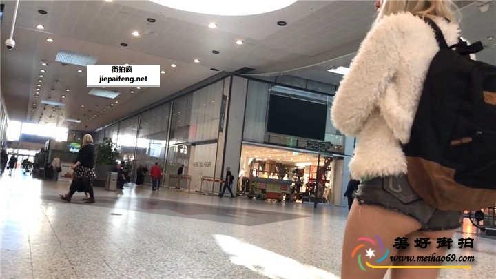 街拍军绿色热裤金发洋妞性感圆翘臀[MP4/614M]