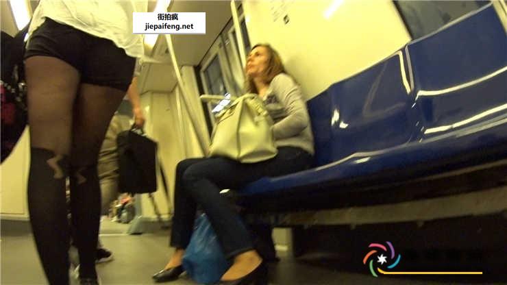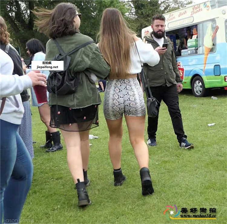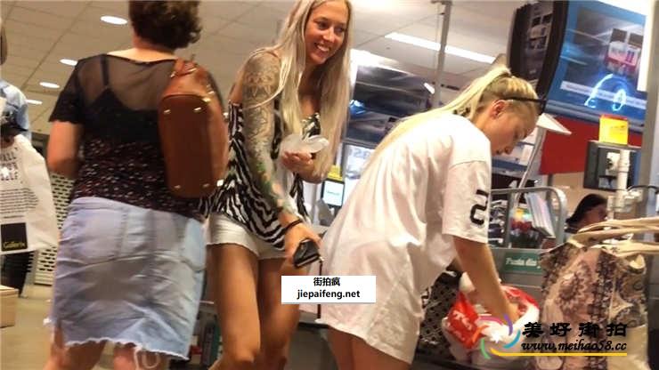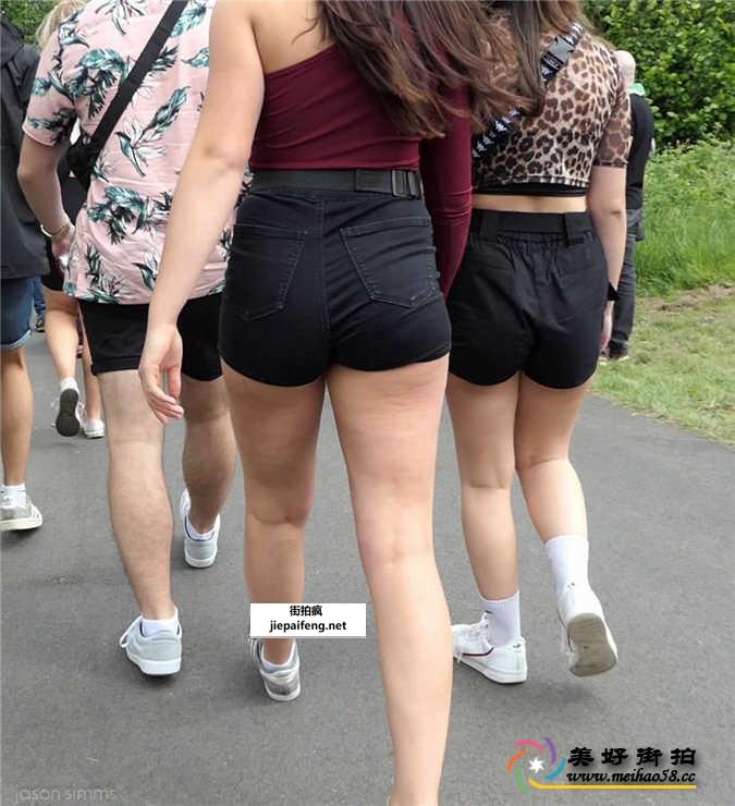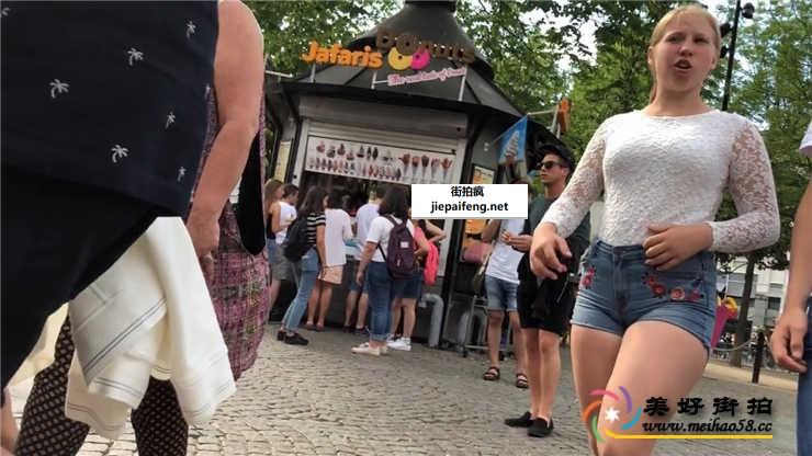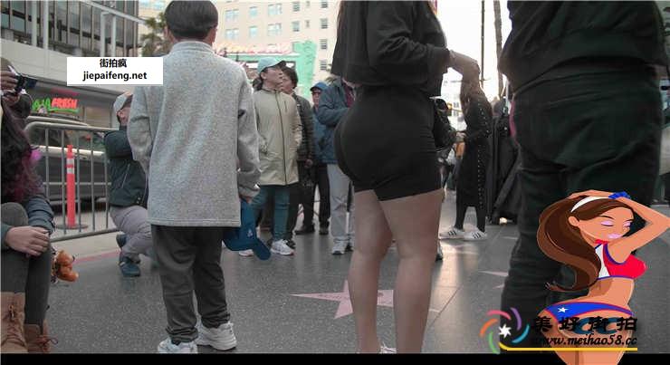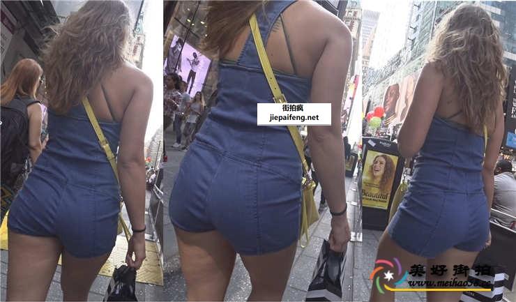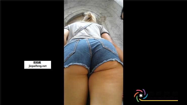 街拍黑色紧绷牛仔热裤金发美眉性感白腿美臀[MP4/254M]