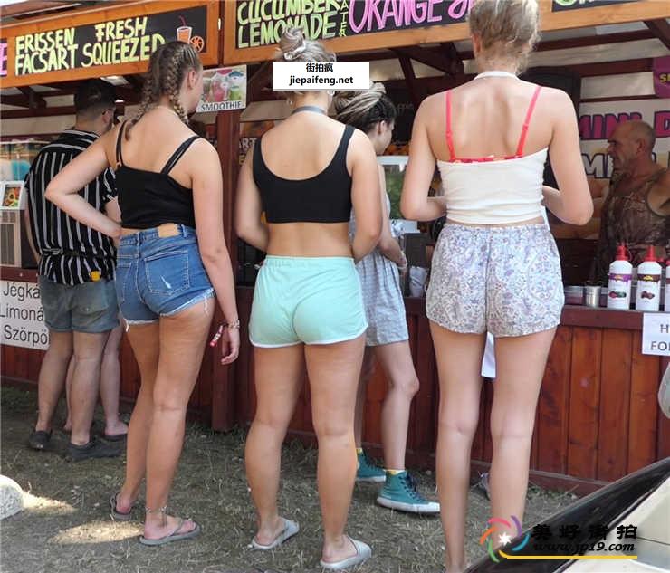 街拍牛仔热裤性感圆润翘臀金发美眉合集[MP4/822M]