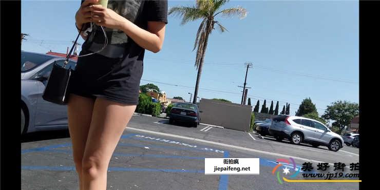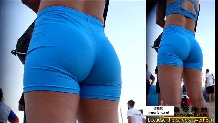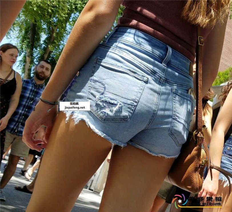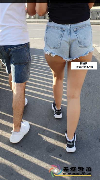 街拍蓝色牛仔热裤好身材细腿圆臀美眉[MP4/338M]