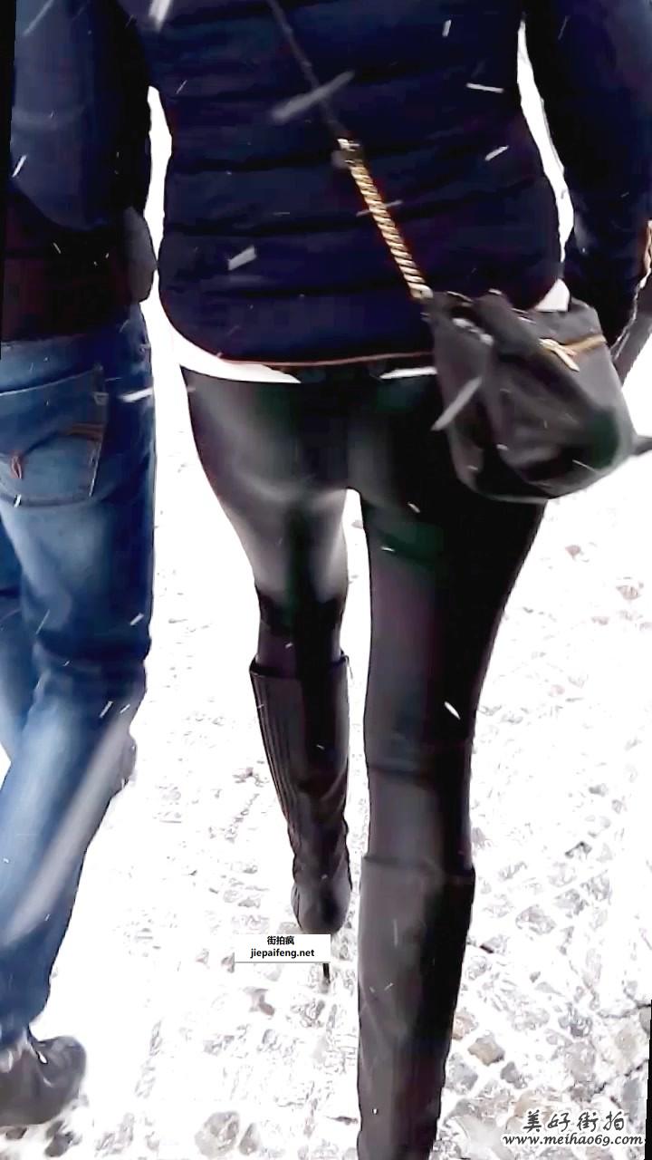雪天跟拍黑色紧身皮打底裤性感圆臀美妇[MP4/52M]