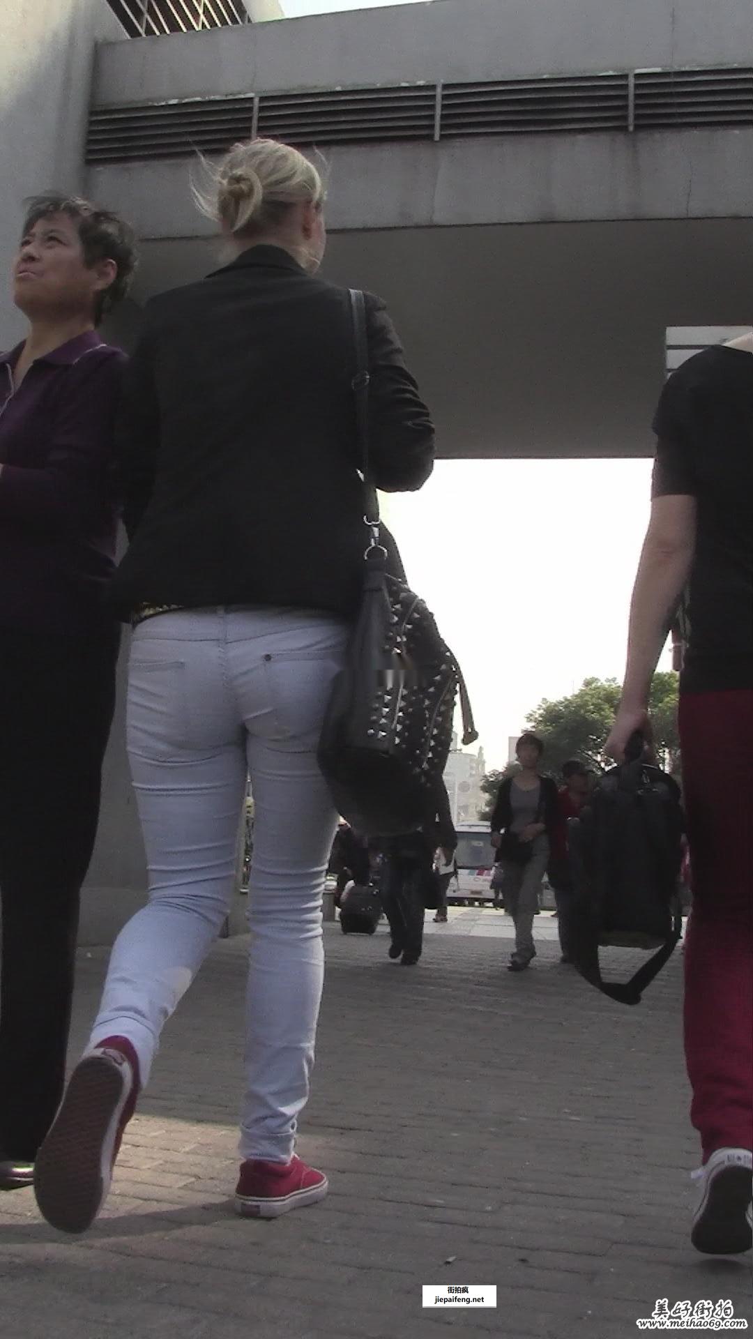 蓝色紧身裤丰满圆润肉臀洋少妇[MTS/205M]