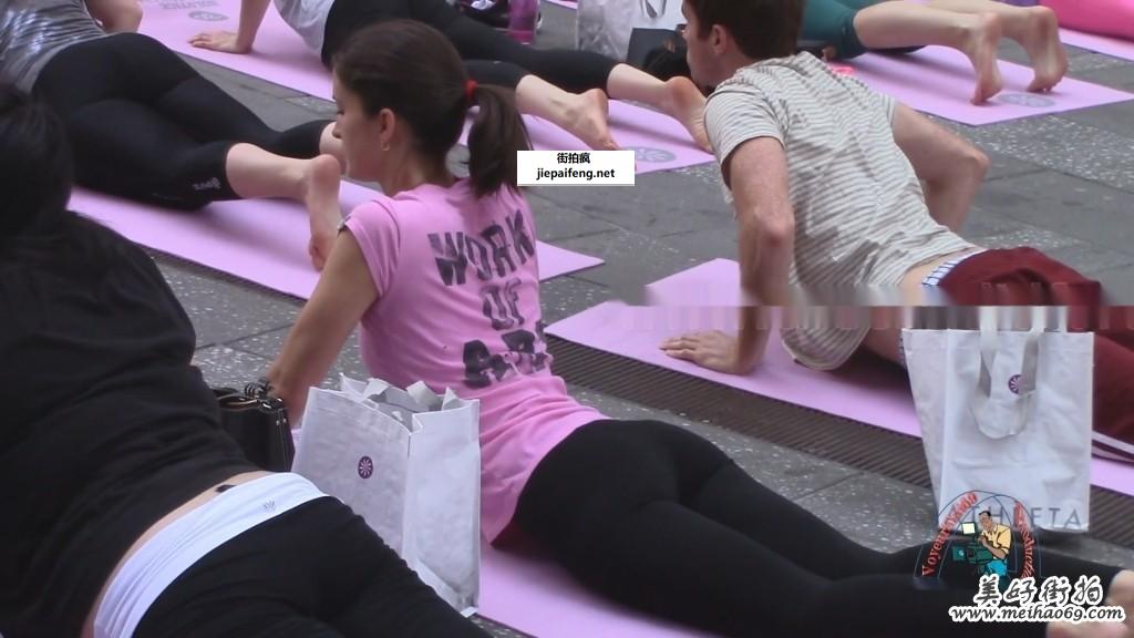 街头练习瑜伽的黑色丝袜打底裤,阳光下清晰可见[MP4/511M]