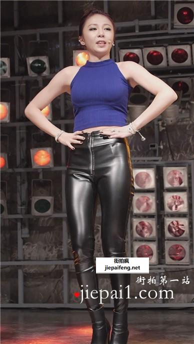 超级紧身黑色皮裤性感好身材美女饭拍秀。