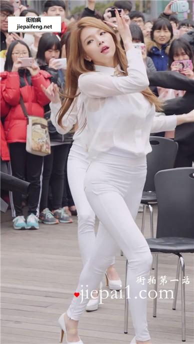 超美白衬衫白裤性感女孩热舞饭拍,有点像邓紫棋。