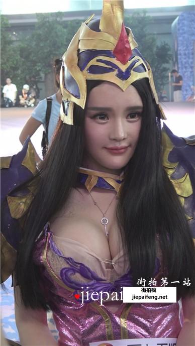 chinajoy现场拍摄黑丝美腿cosplay独眼龙的妹子。