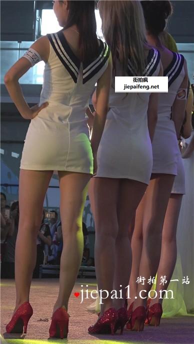 chinajoy现场舞台上拍摄白色包臀裙showgirl美女