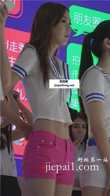 小清新甜美粉色超短热裤美女。