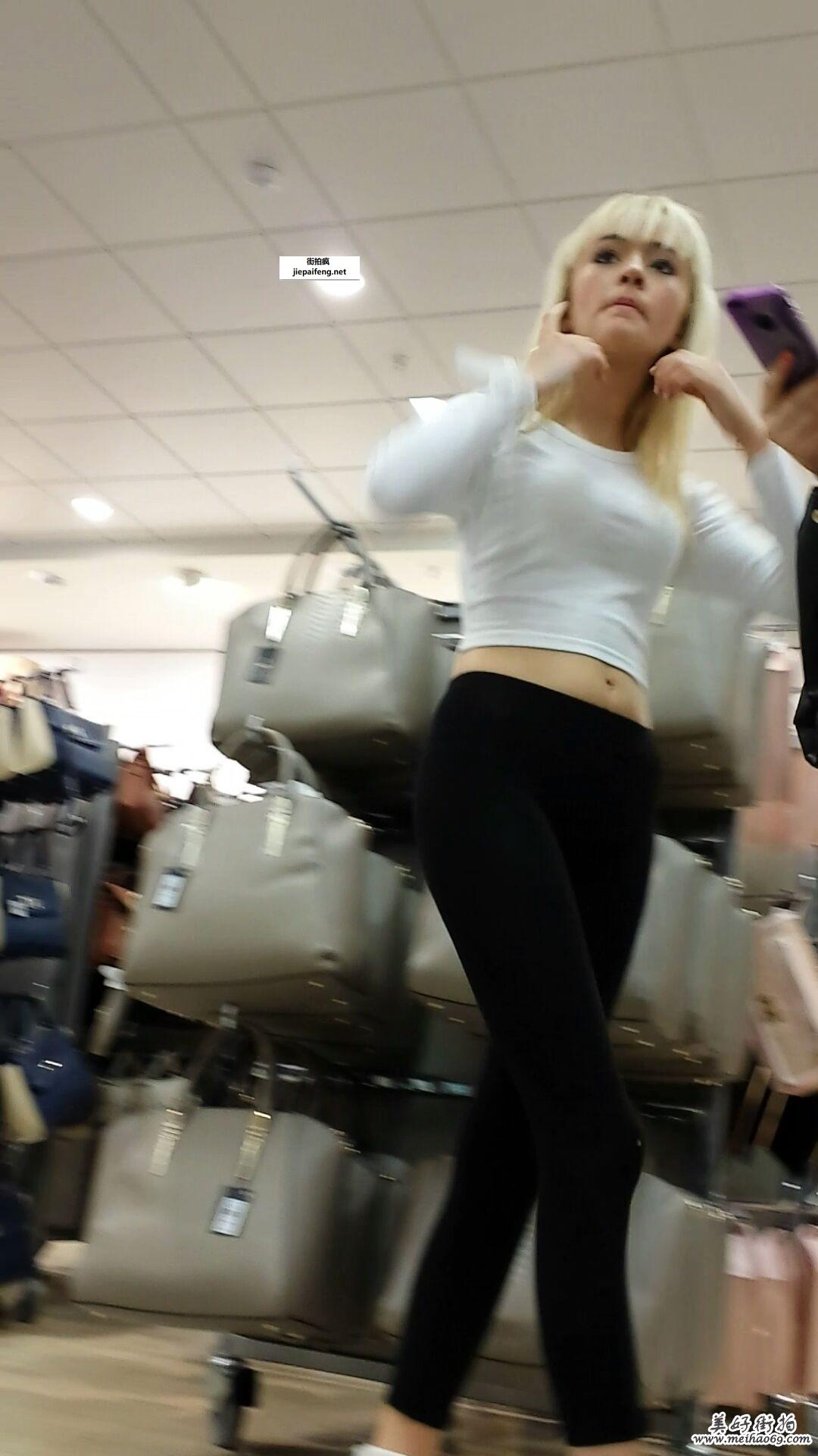 排队等候紧身打底裤圆润翘臀美妞[MP4/263M]