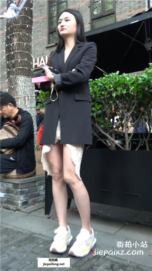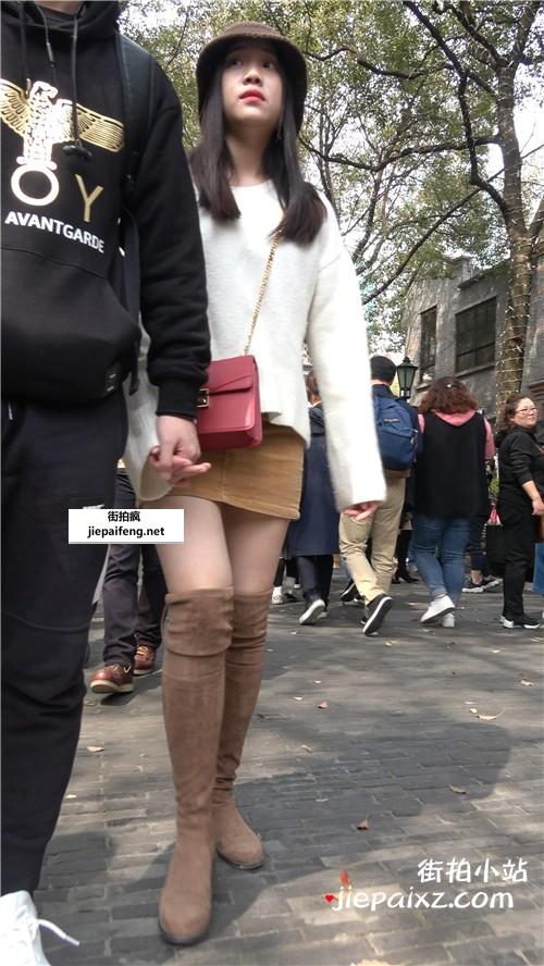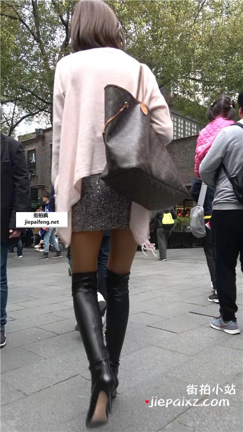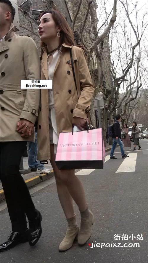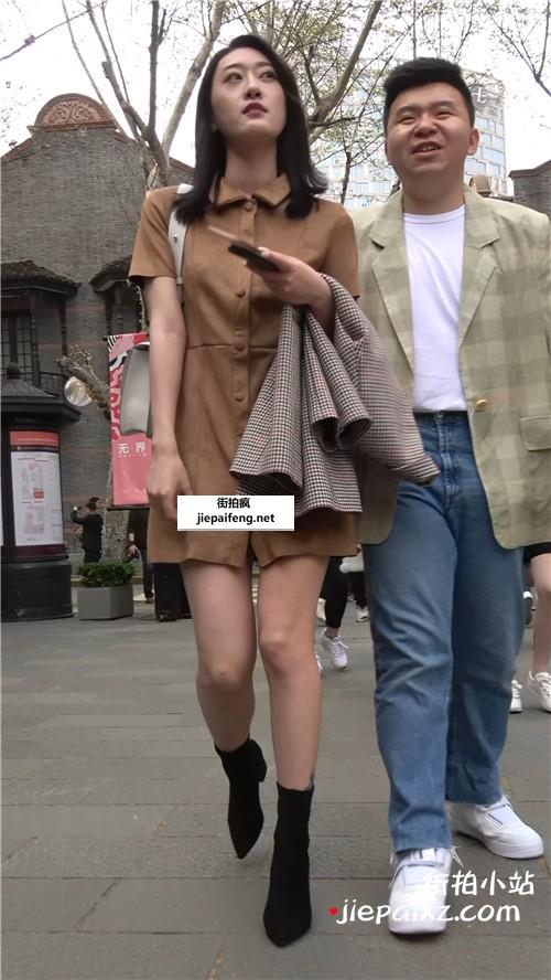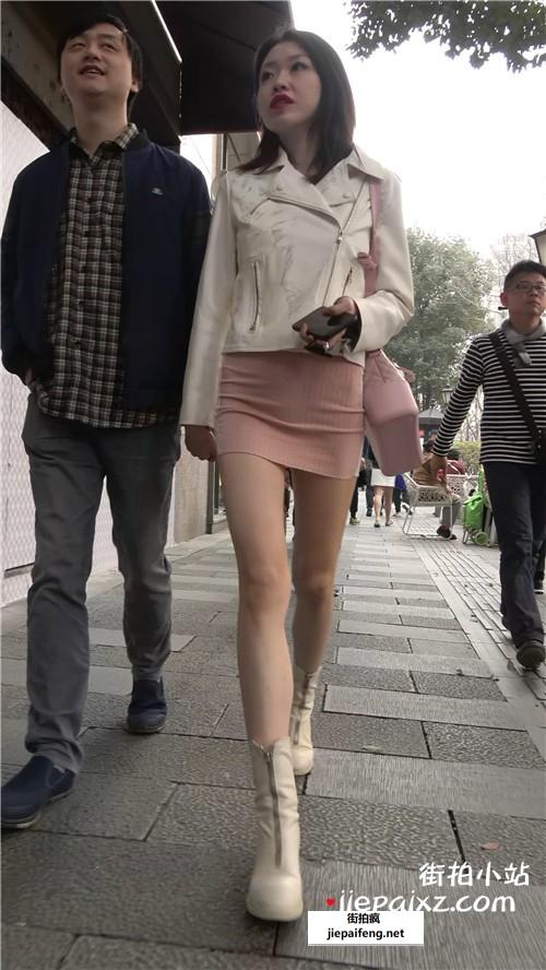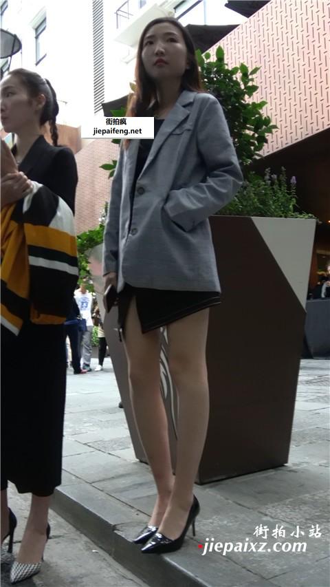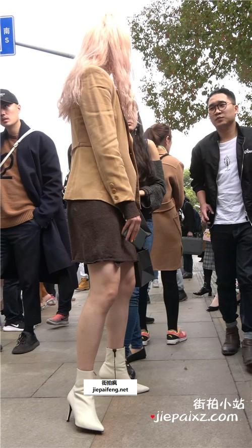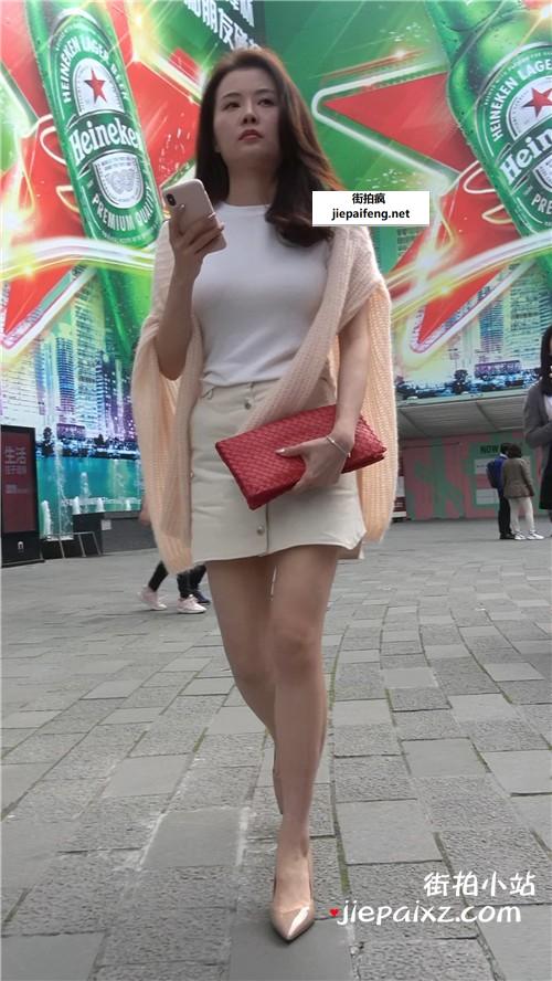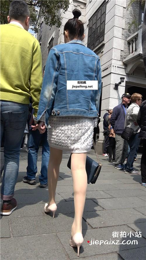 米色高跟,大长腿短裙性感街拍美女