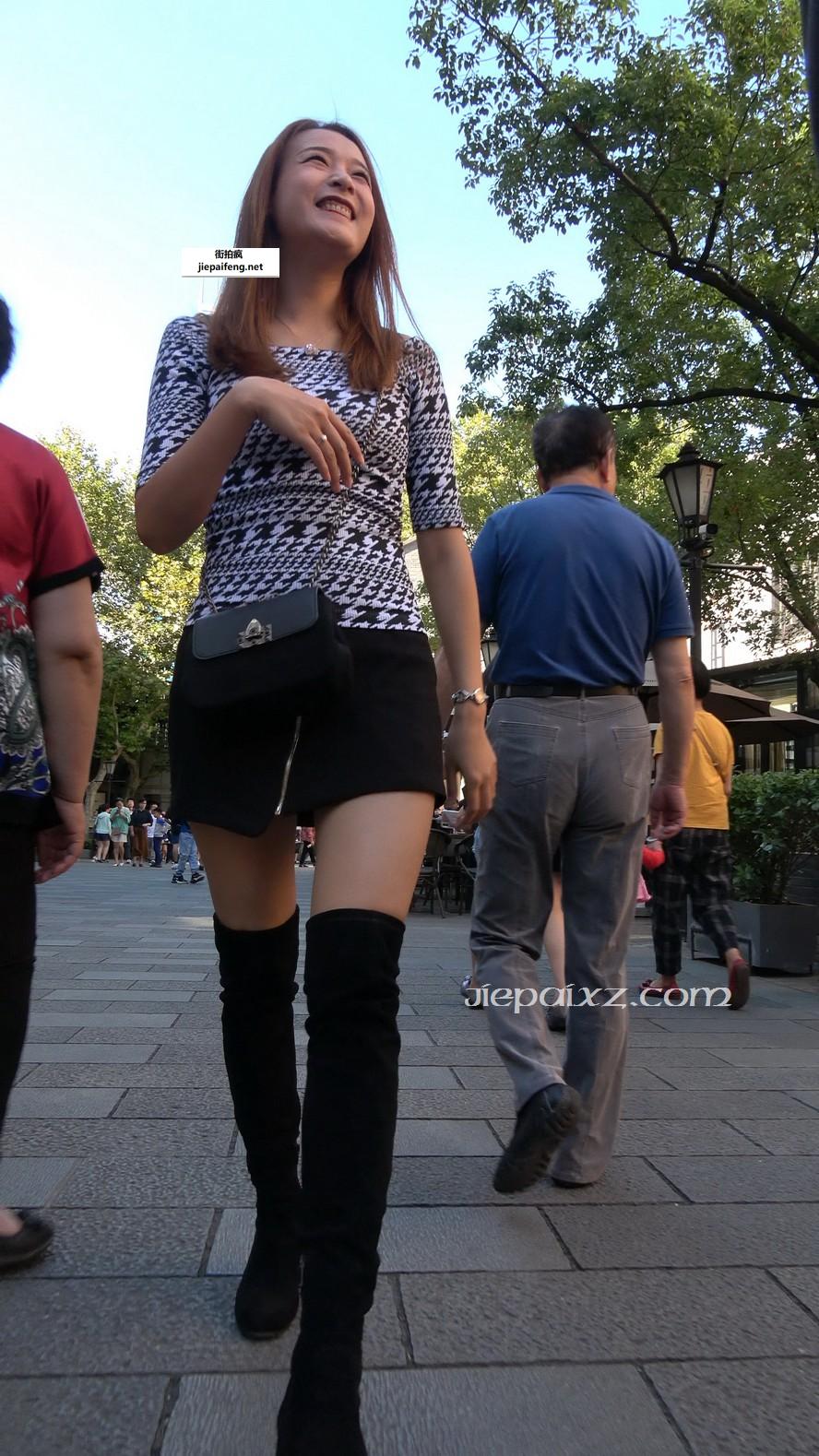 街拍美眉黑色紧身打底裤丰满圆润翘臀[MP4/622M]