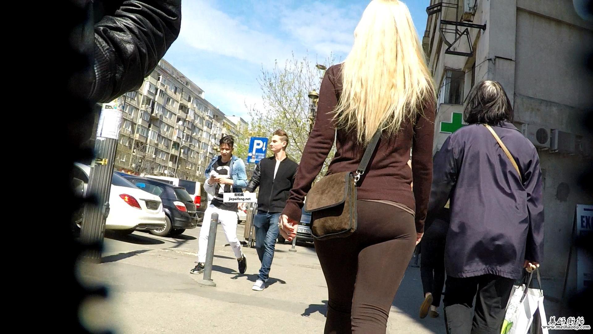 街拍棕色紧身裤肥臀金发妹子[MP4/558M]