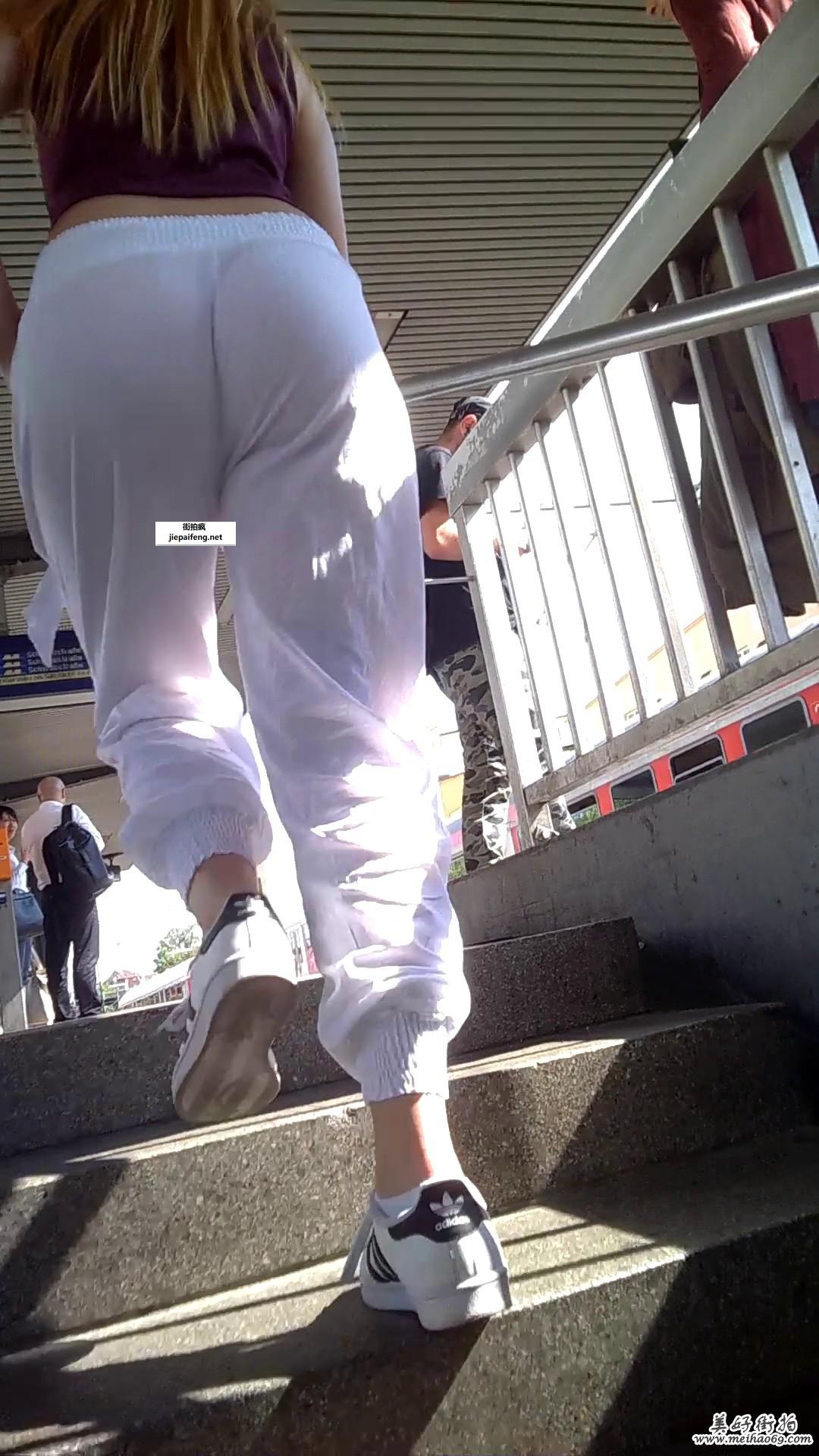 丰臀漂亮美女搭配宽松薄白裤,很透哦[MP4/382M]