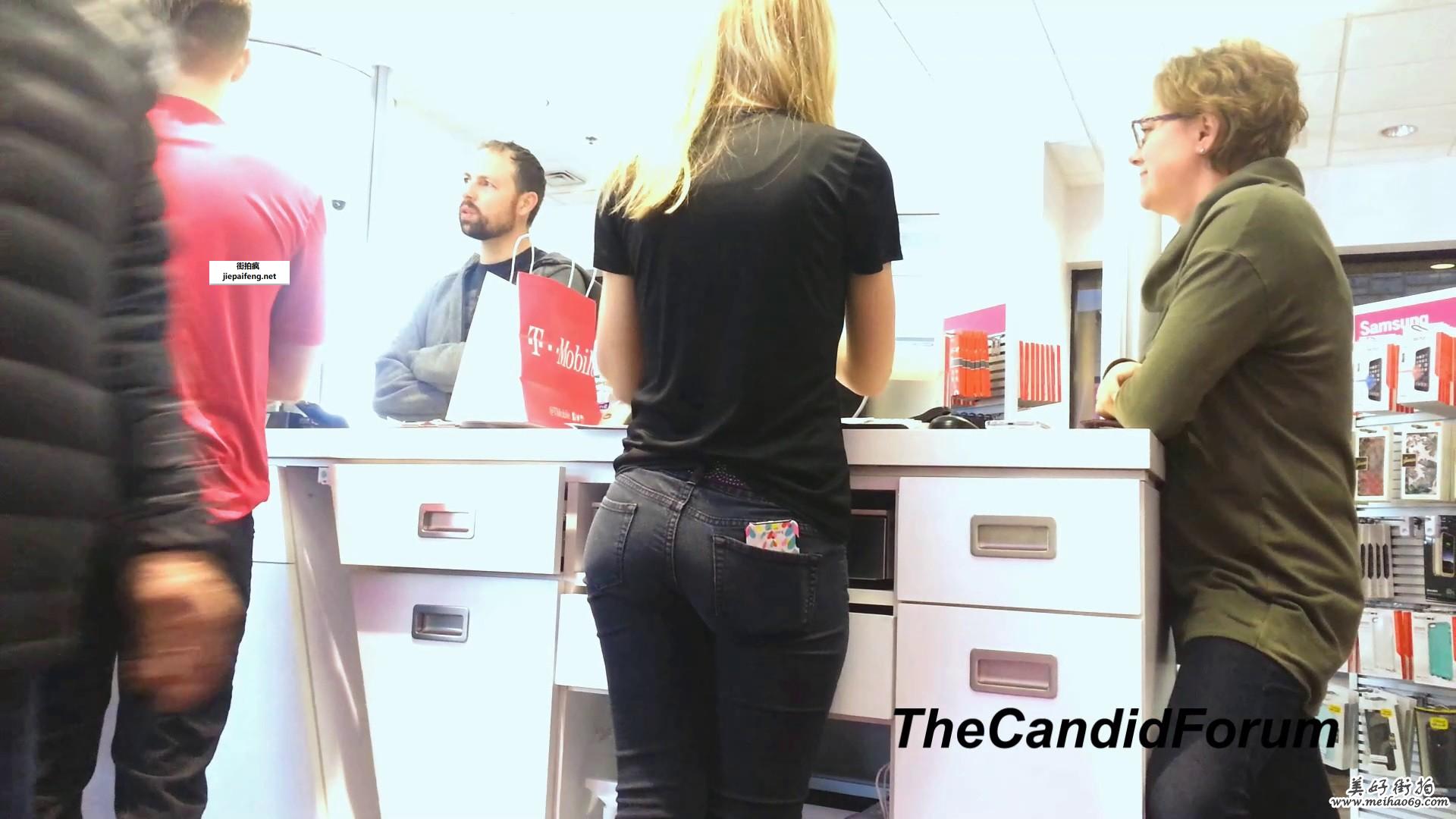 街拍紧身牛仔裤紧臀洋妞[MP4/332M]