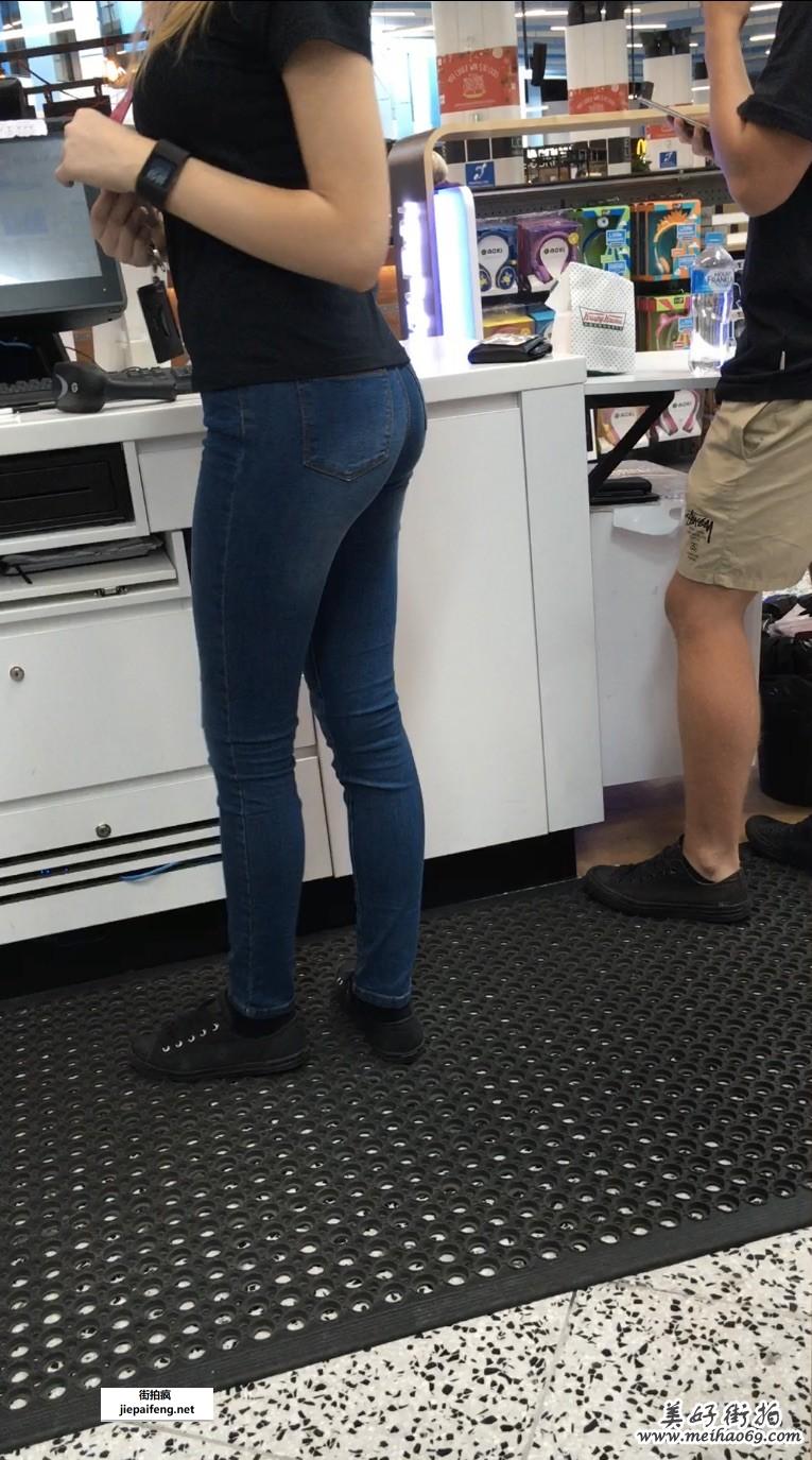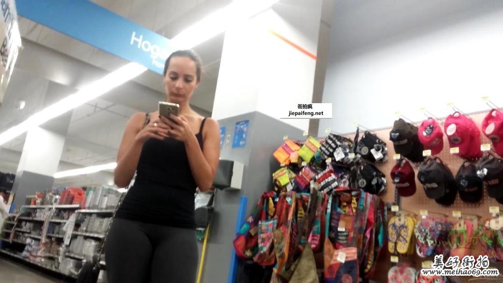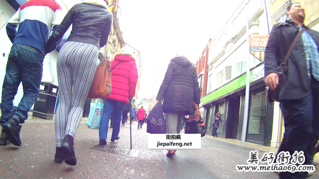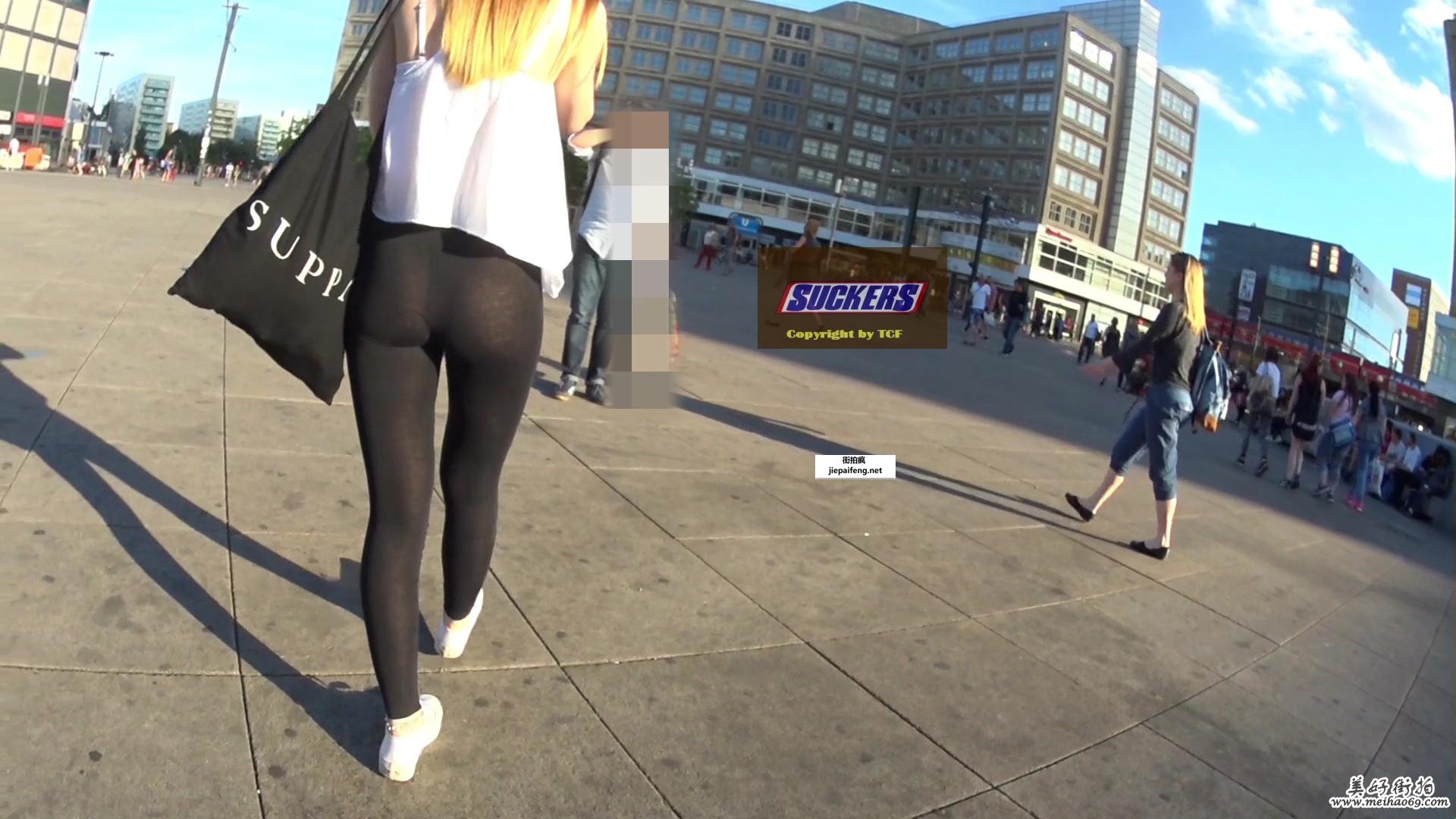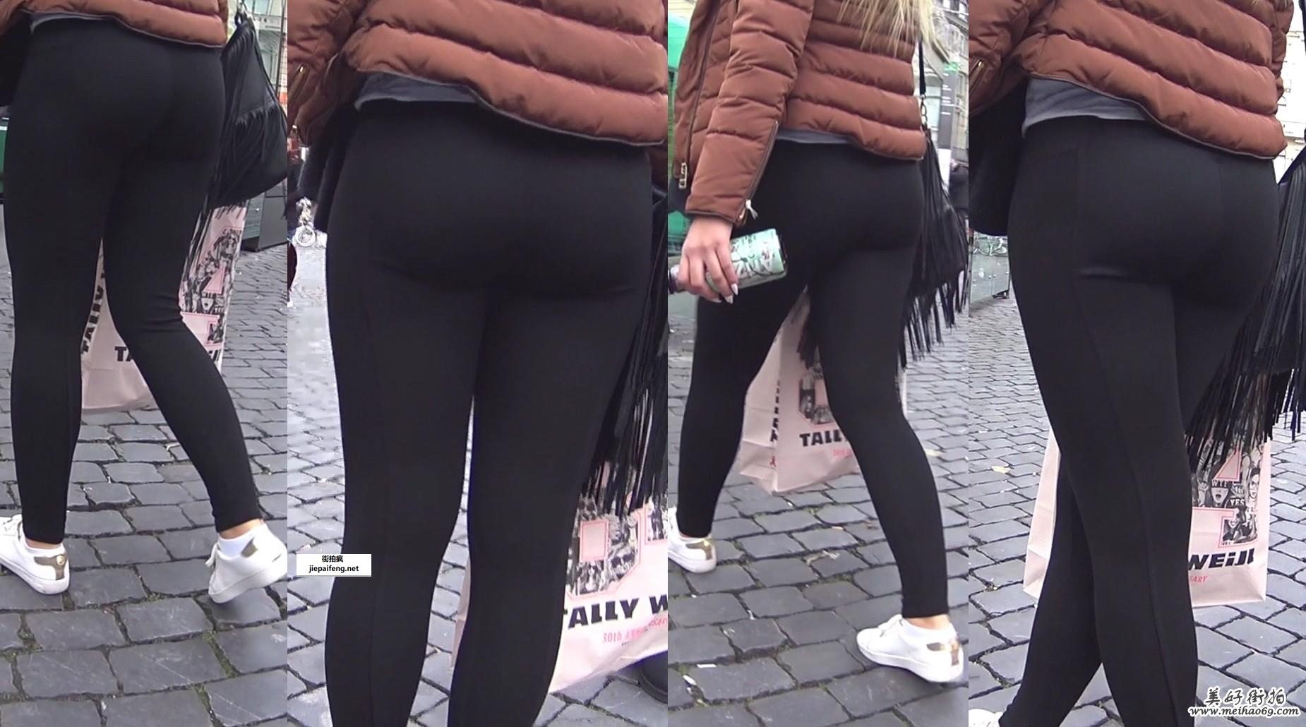 跟拍年轻洋妞黑色打底裤完美臀型[MP4/164M]