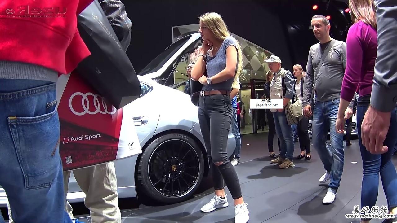 车展蓝色牛仔裤极品饱满肥臀漂亮洋妞[MP4/1.13G]