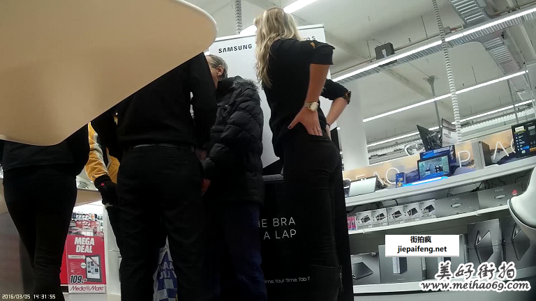 逛商场买鞋子的金发洋妞紧身牛仔裤[MP4/481M]