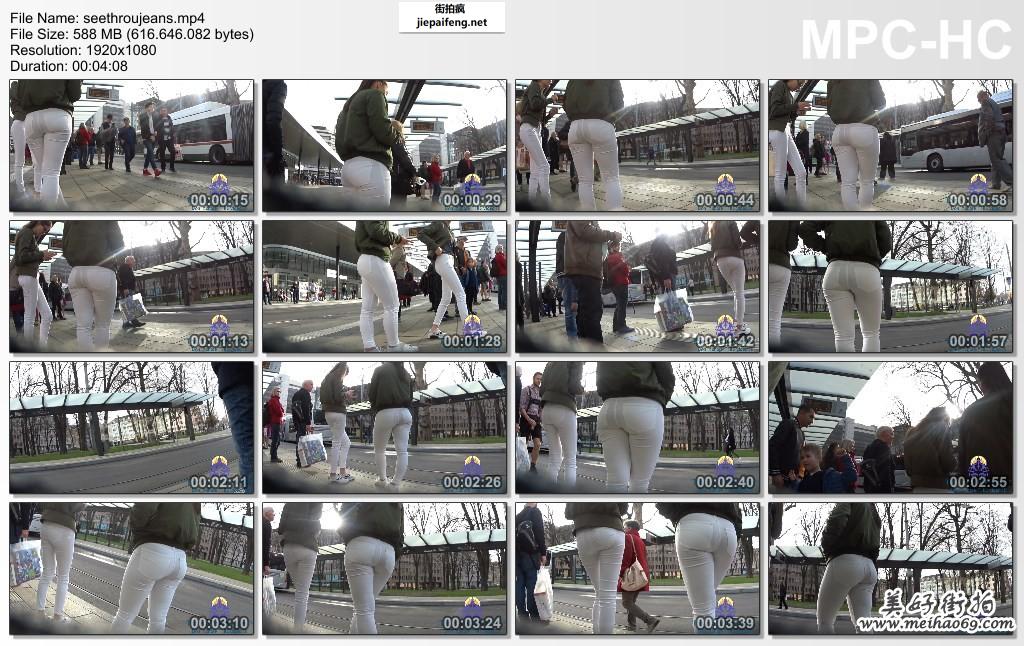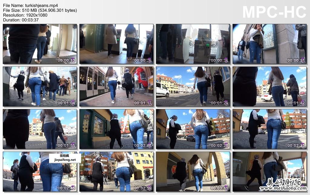 街拍紧身牛仔裤极品圆润翘臀洋妞[MP4/89M]