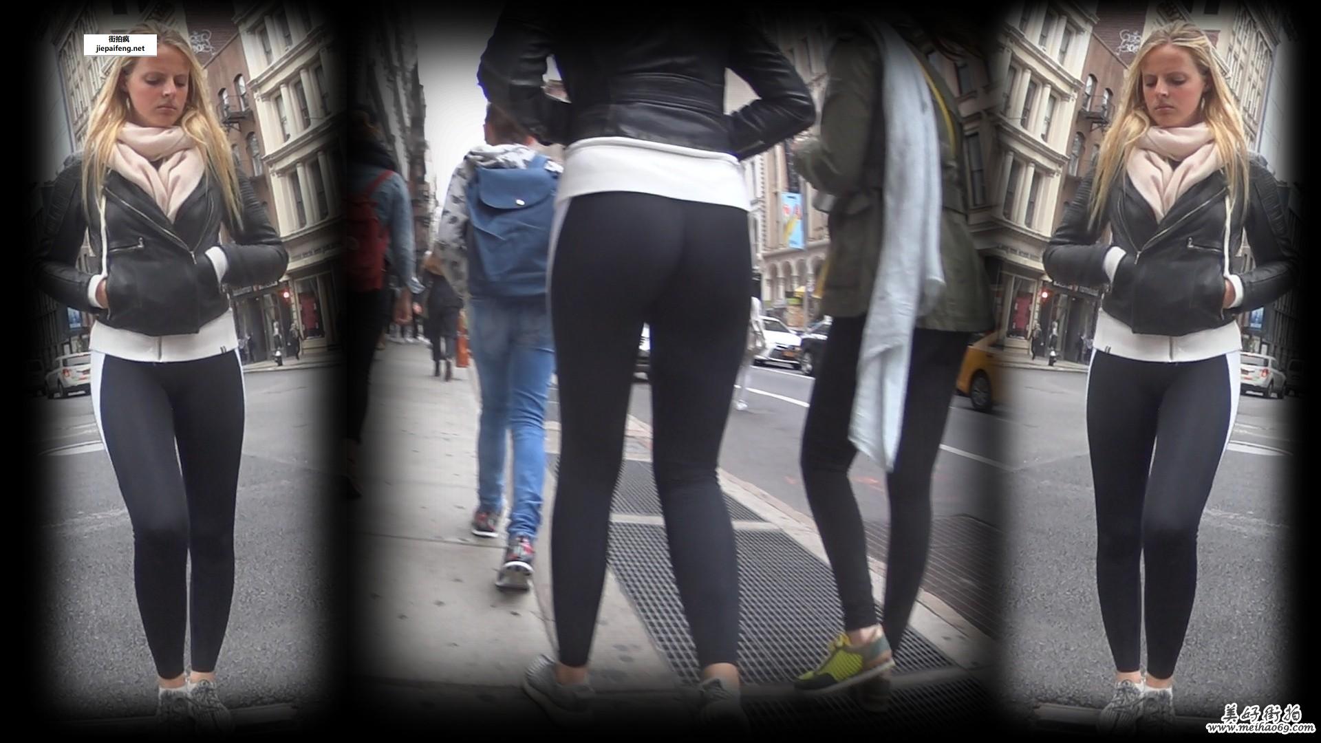 跟拍黑色紧身打底裤性感身材洋妞圆润翘臀[MP4/165M]