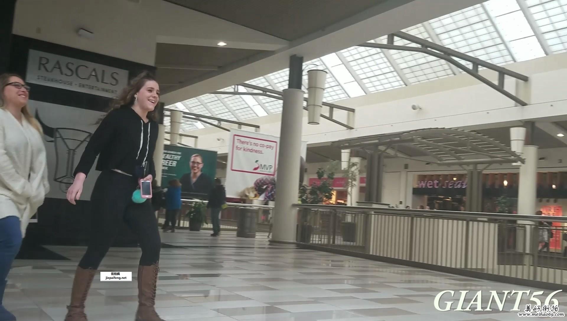 街拍黑色紧身打底裤饱满圆润翘臀高挑身材洋妞[MP4/168M]
