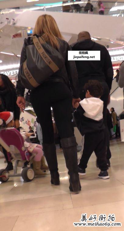 街拍蓝色紧身牛仔裤性感饱满大屁股金发洋妞[MP4/250M]