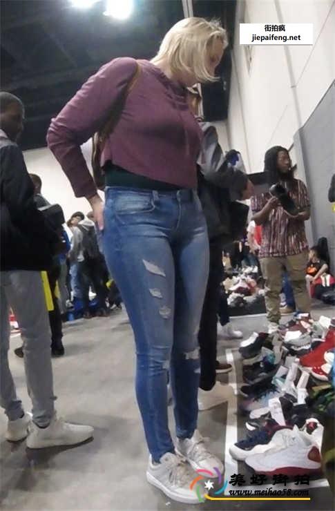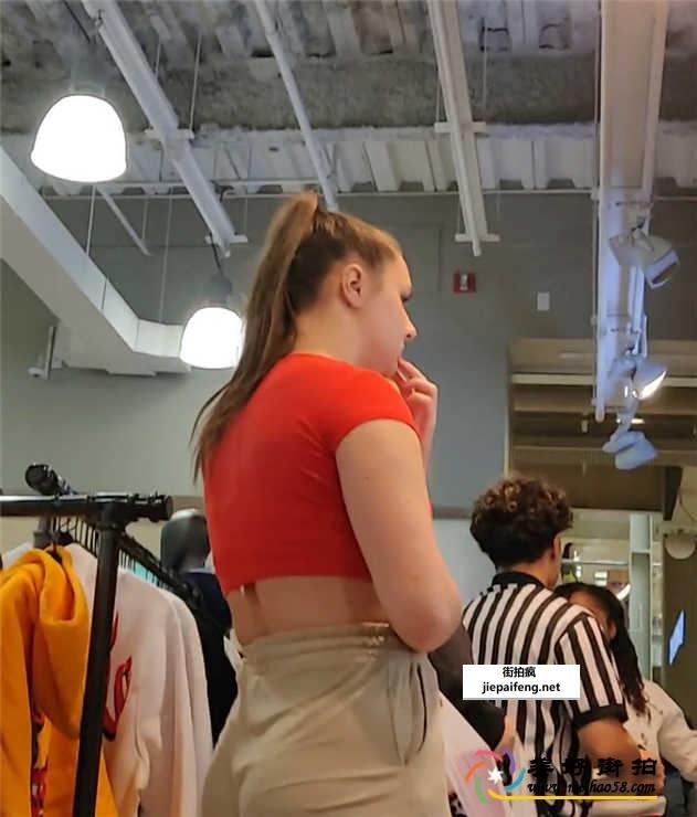 商场超市购物的金发美眉蓝色紧牛圆润翘臀[MP4/123M]