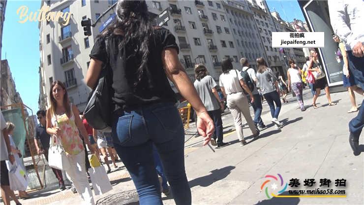 街头跟拍蓝色紧身牛仔裤洋妞饱满圆润翘臀[MP4/351M]