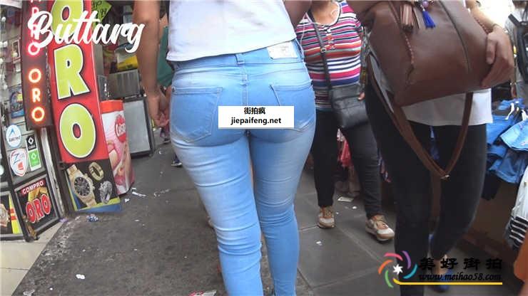 街拍蓝色紧绷牛仔裤洋妞极品饱满圆润大屁股[MP4/153M]