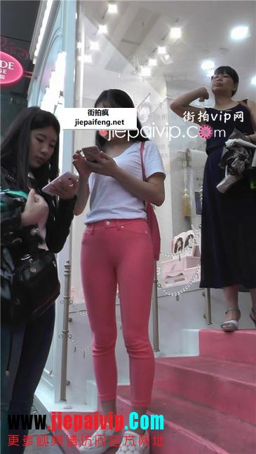 很容易让你中毒的性感紧身粉裤诱人美女