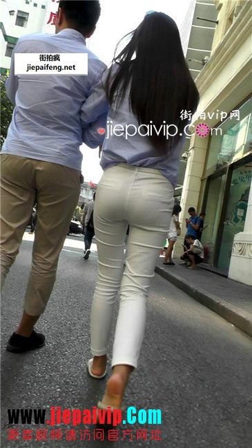紧身白裤内痕美女